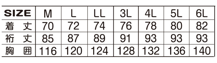 サイズ/M・L・LL・3L・4L・5L