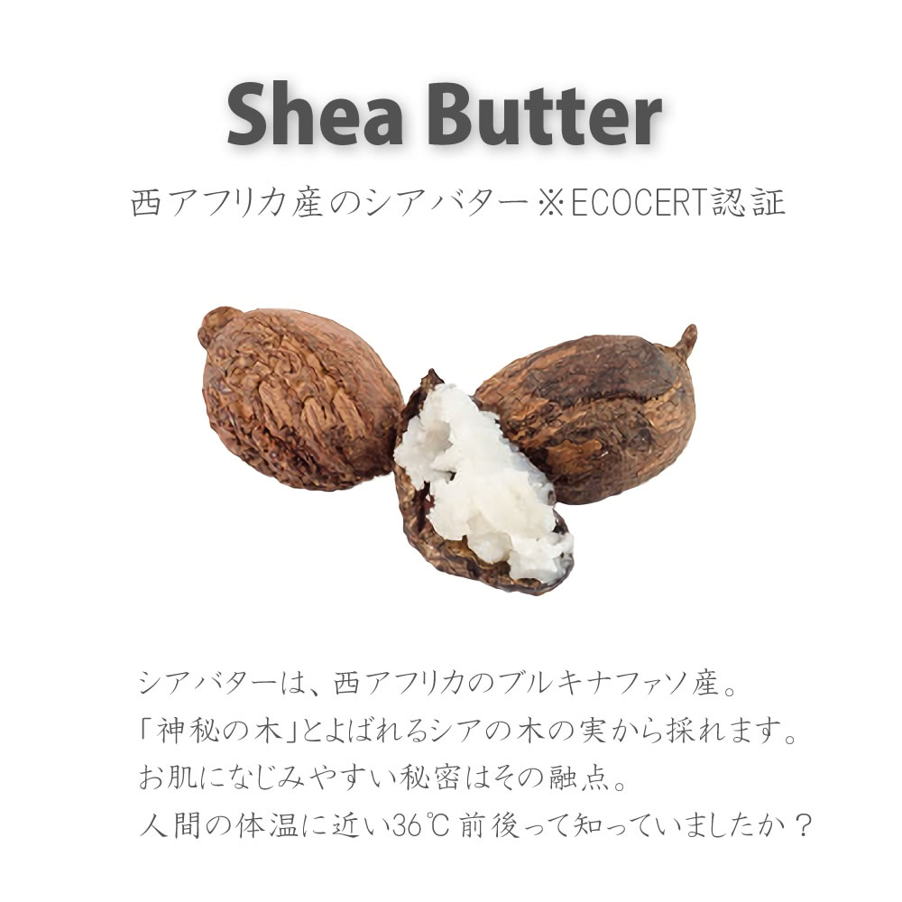 南フランスのグラースで調合された香料を使用。エコサート認証シアバター(シア脂)使用。