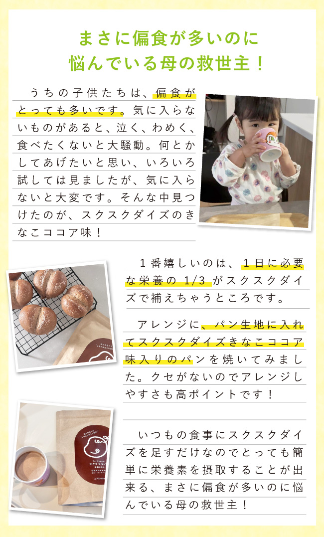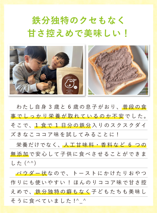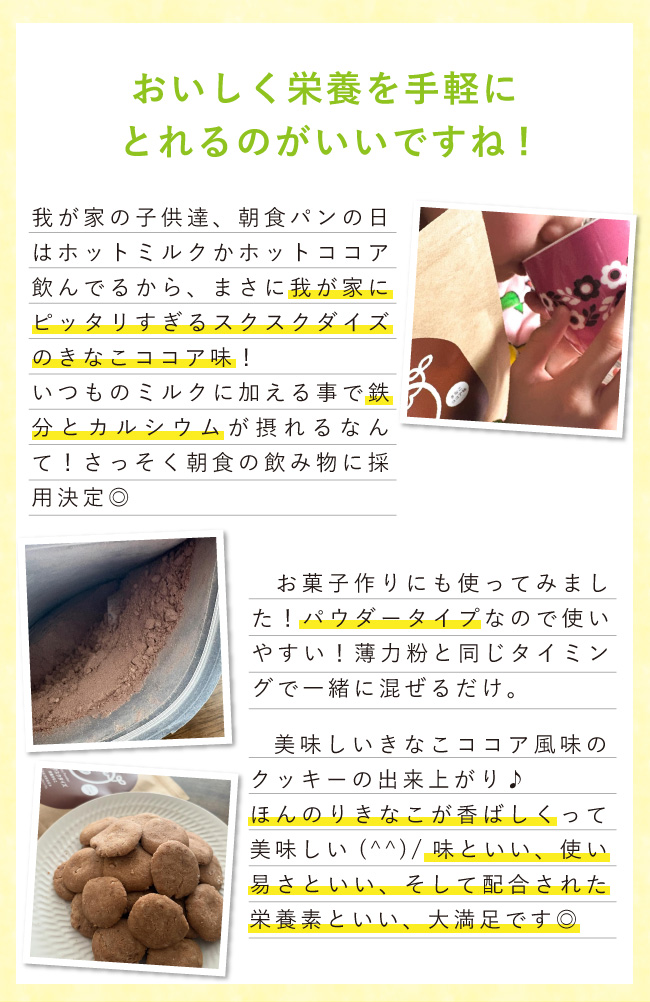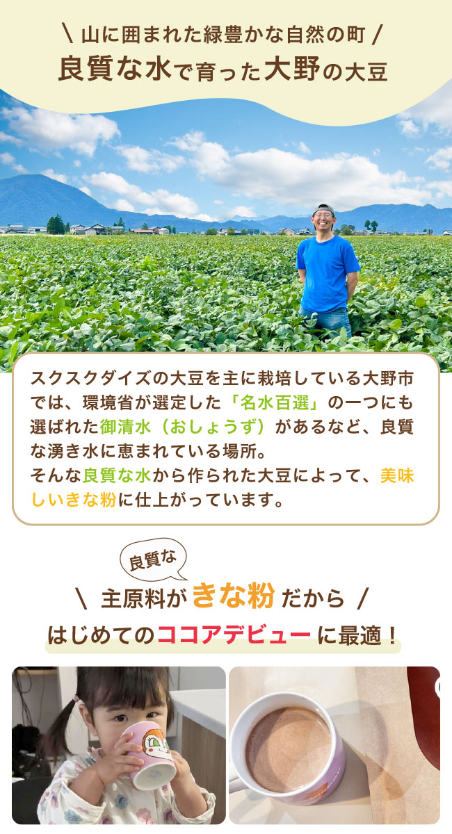 スクスクダイズ きなこココア味 甘さ控えめ 子供 鉄分 パウダー 無添加 カルシウム 亜鉛 身長 きな粉 ココア 鉄分補給 赤ちゃん にこにこ