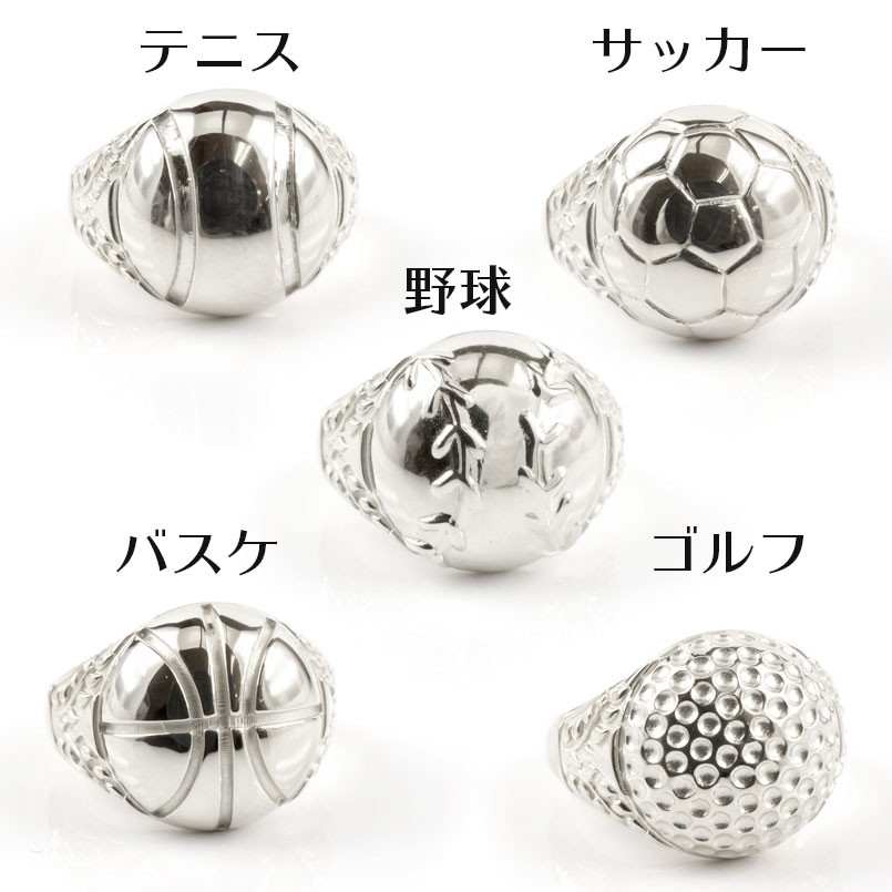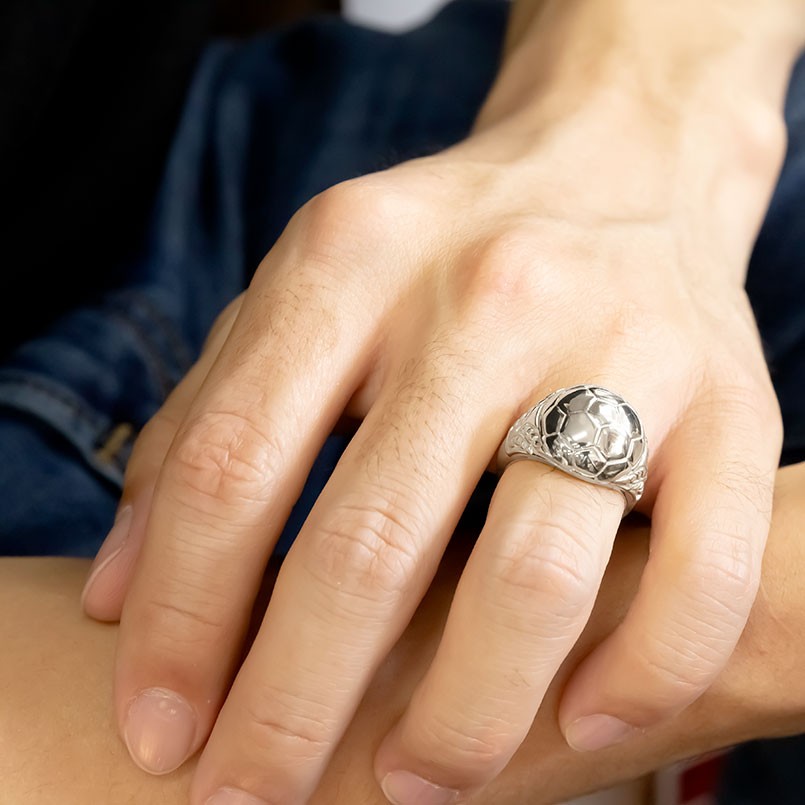 それぞれのスポーツのボールを細かく再現したメンズ印台リング