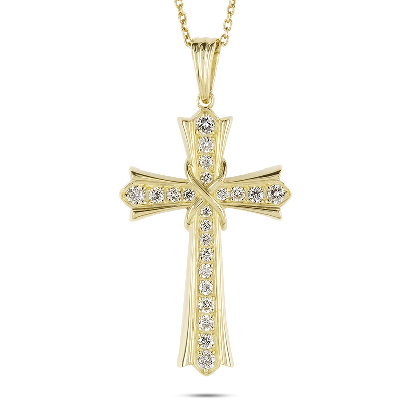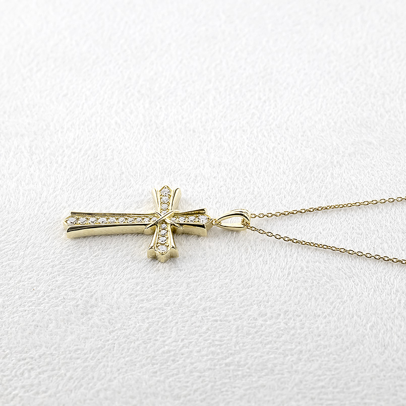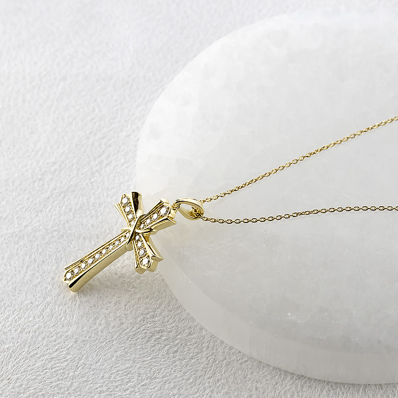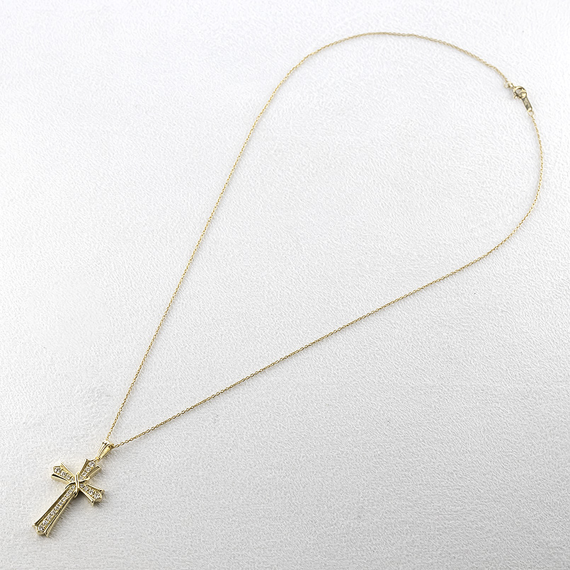 18金 ネックレス クロス ペンダントトップ 大ぶり ダイヤモンド