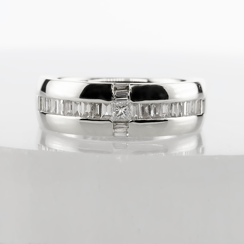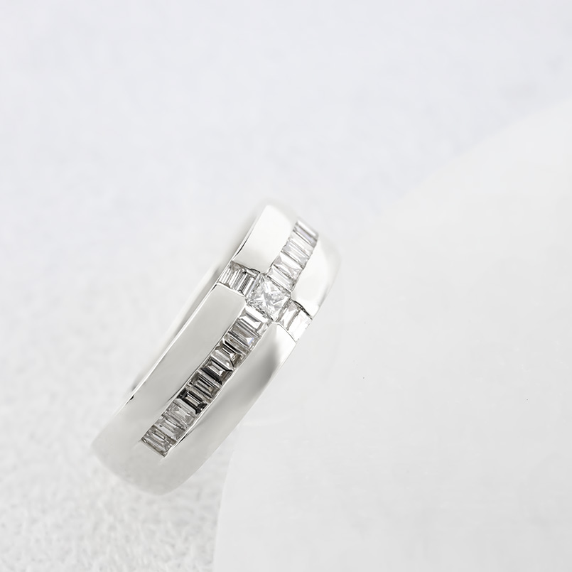 プリンセスダイヤとバケットダイヤを端正に並べた、気品漂うスタイリッシュリング