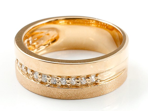 ペアリング 結婚指輪 ペア ピンクゴールドk10 ダイヤモンド ブラックダイヤモンド 指輪 幅広 つや消し 10金 ダイヤ マリッジリング