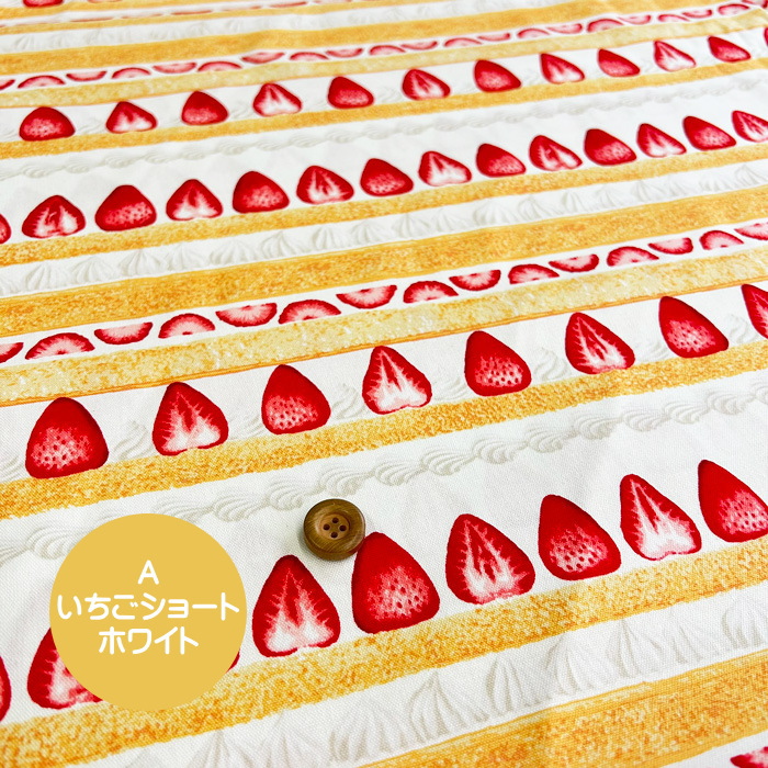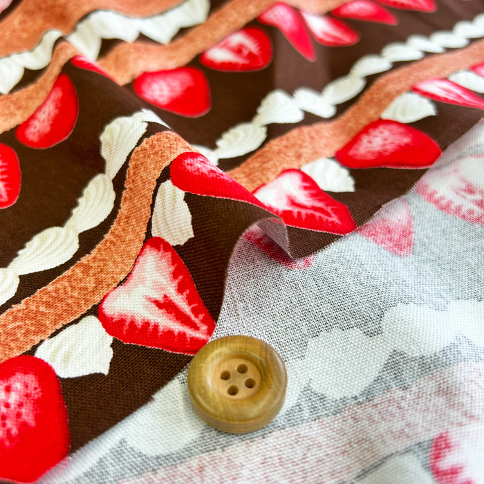 いちごショートケーキ柄オックス生地/ショートケーキのボーダー柄の生地/いちごのショートケーキ柄/チョコレートケーキ柄/入園入学/N25