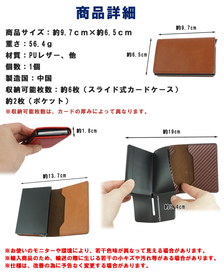 カードケース スライド式 スキミング防止 RFID コンパクト スリム 財布 紙幣 PUレザー 名刺入れ カードホルダー メンズ レディース ギフト プレゼント