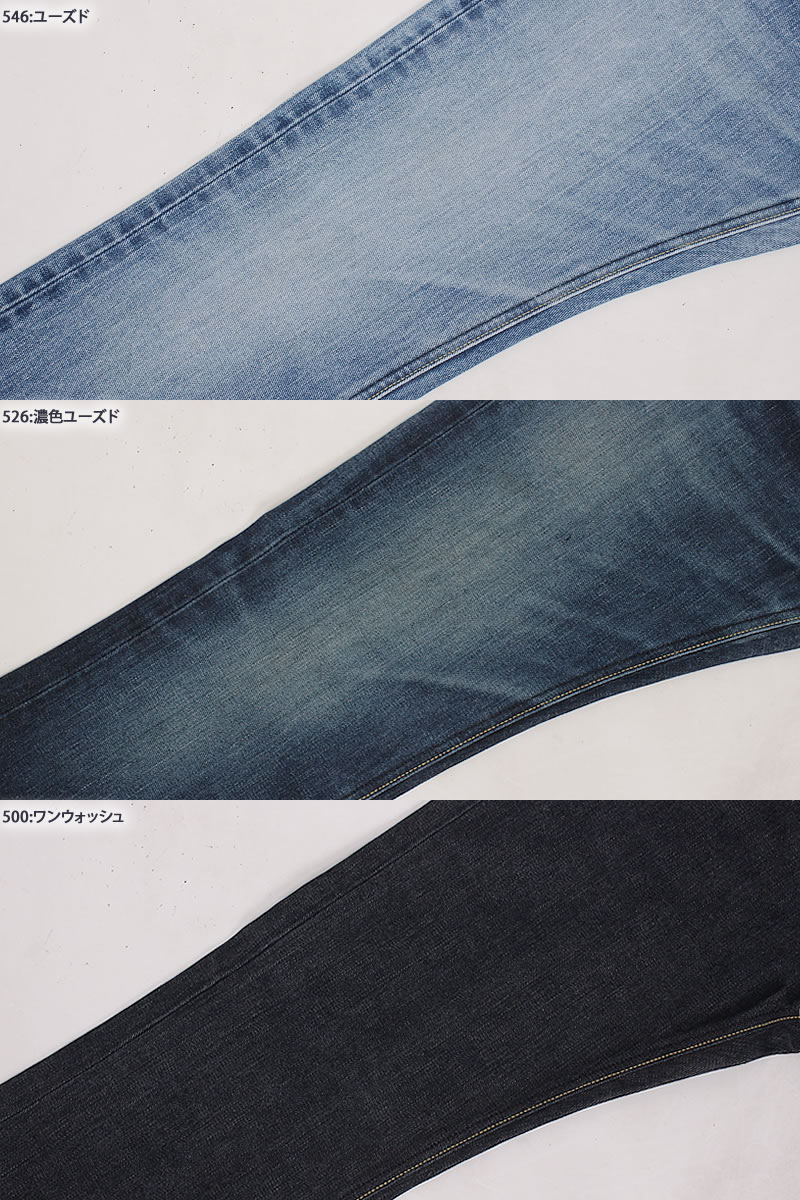 ※500:ワンウォッシュは縮みが出る可能性がございますので、546:ユーズド、526:濃色ユーズドより股下が長く