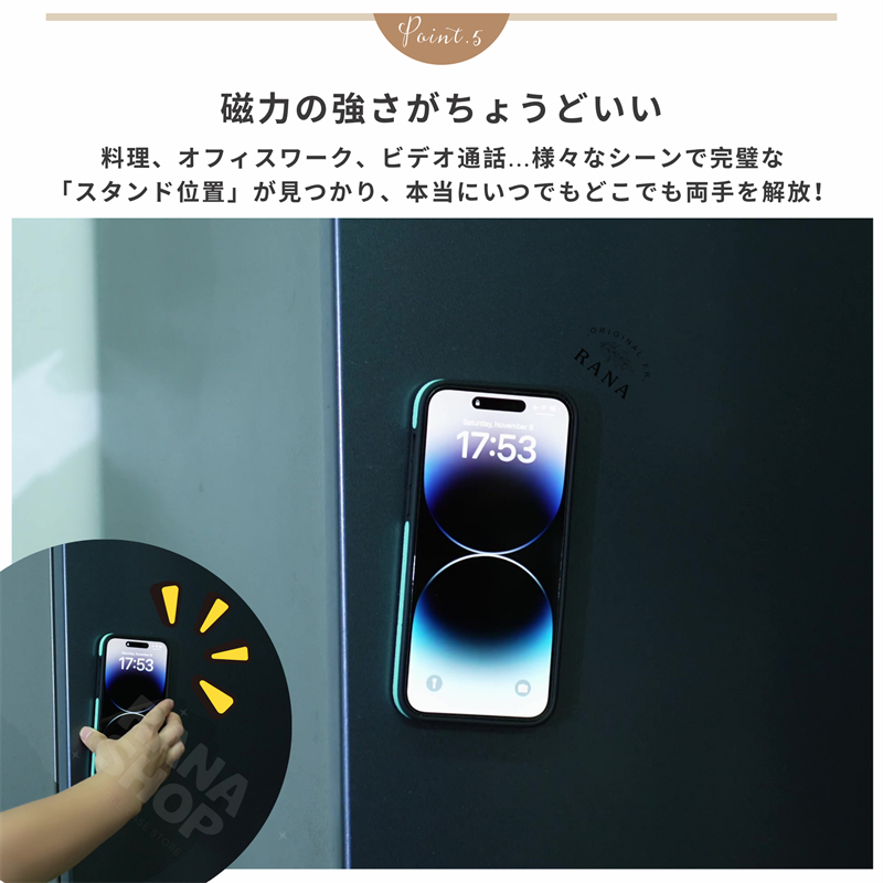 🌸カバーを外した後の磁気吸着機能により、スマホが瞬時に「どこにでも貼り付けられる」スマートデバイスに変身。