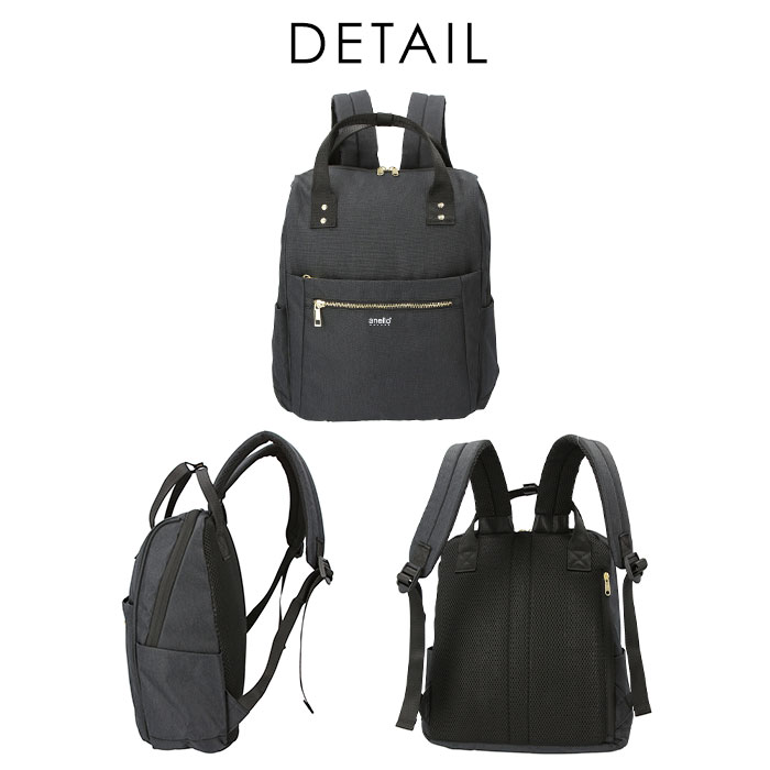・杢調ポリエステルにゴールドの金具使いが女性らしい印象のリュック。