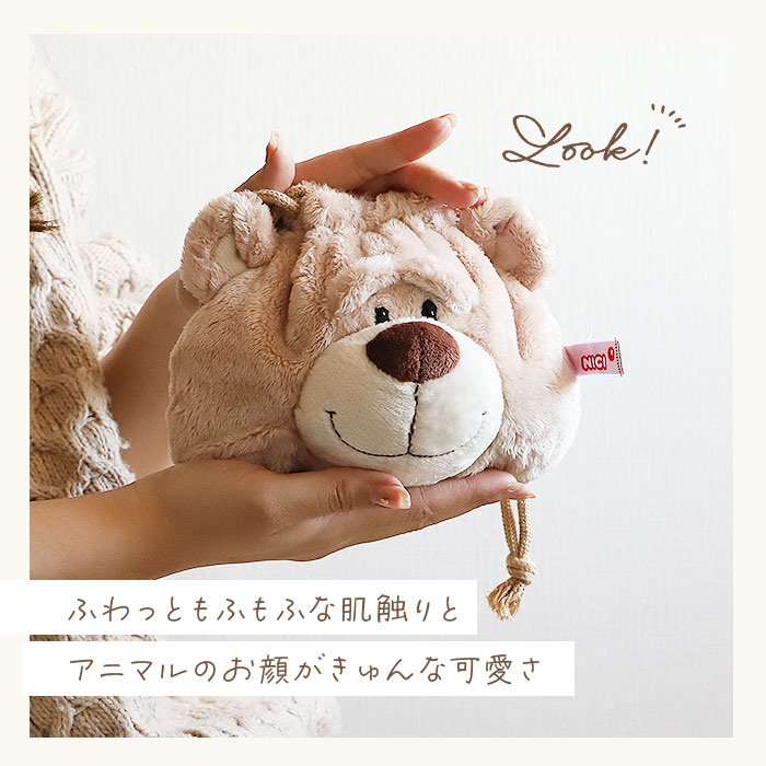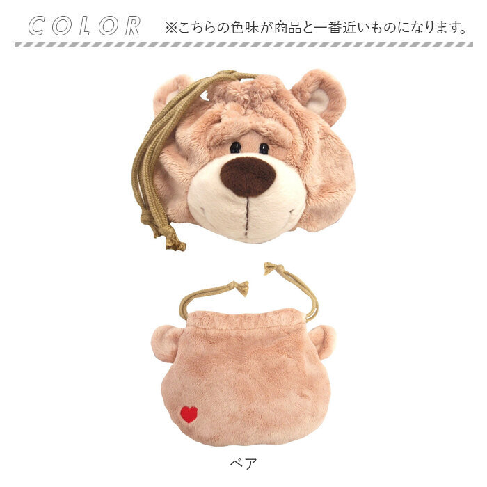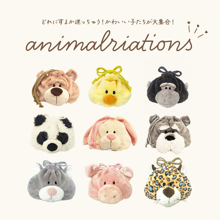 ・アニマルの頭部分のヒモでキュッと口が絞れる!持っているだけで楽しくなるユニークな巾着ポーチ♪