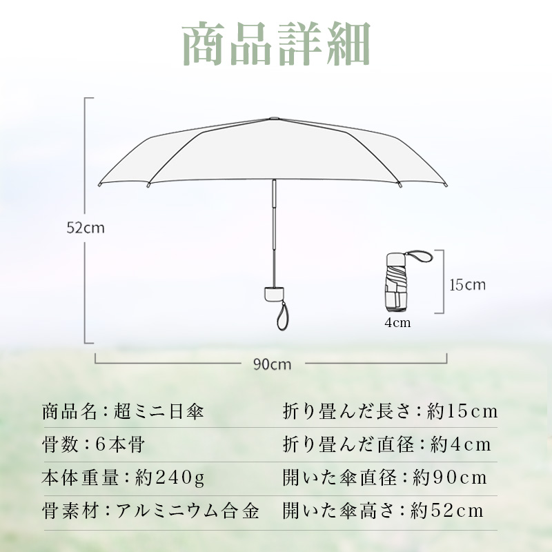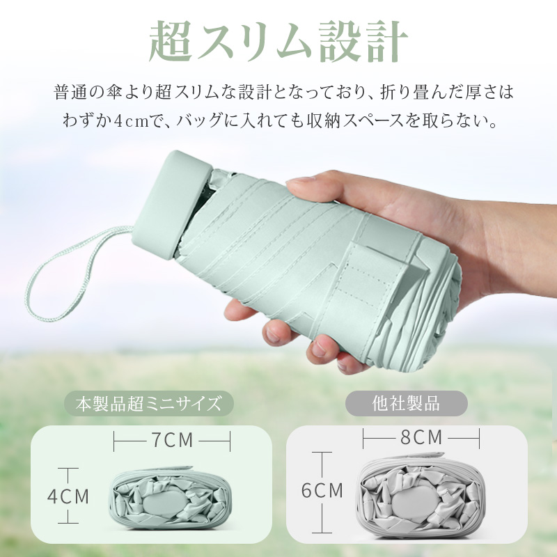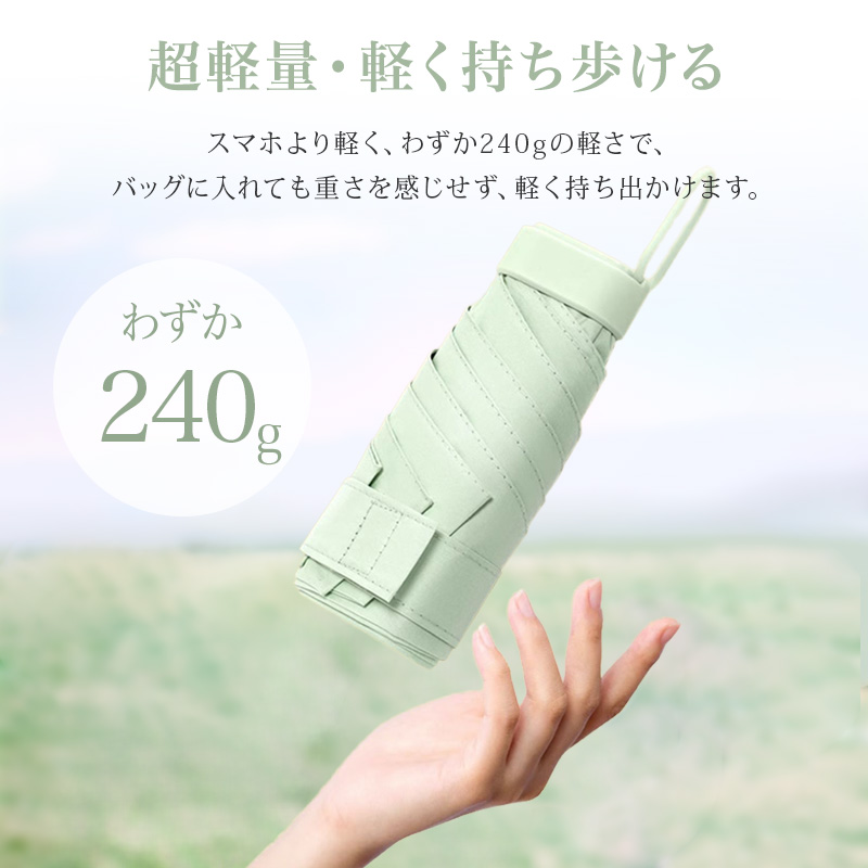 日傘 折りたたみ コンパクト 240g 超軽量 厚み4cm レディース メンズ 晴雨兼用 UVカット UPF50+ 6本骨 3段 耐風 雨傘 遮熱 遮光 ひんやり 傘