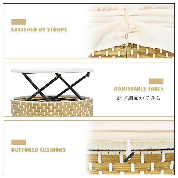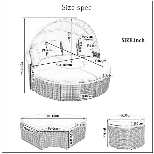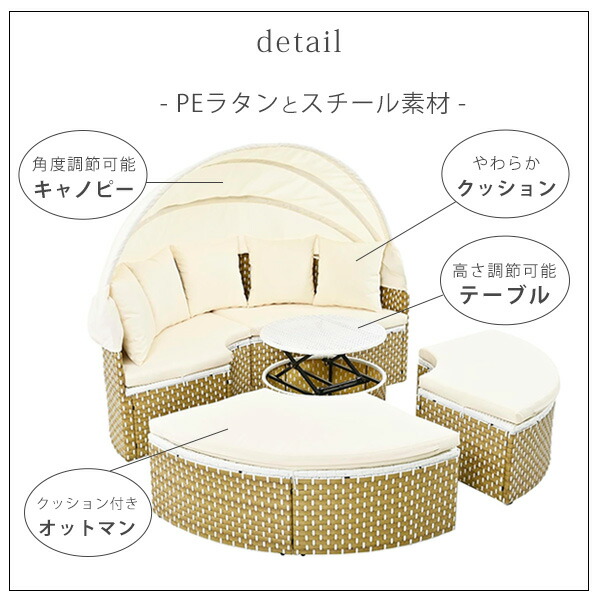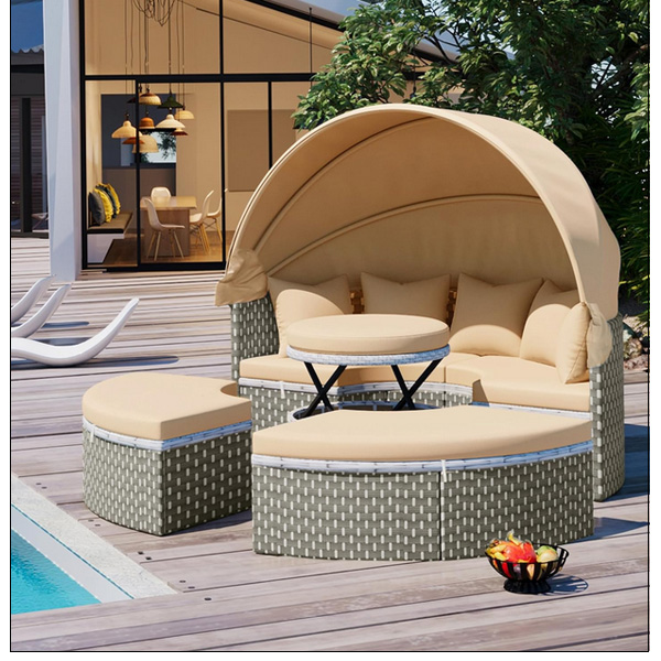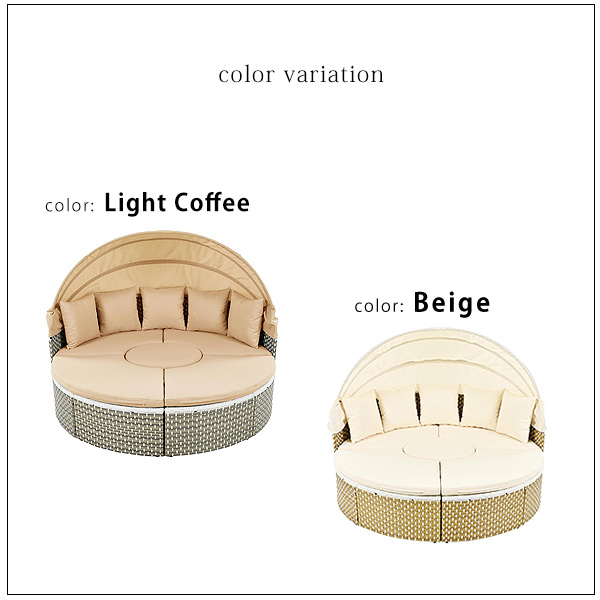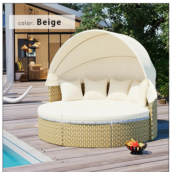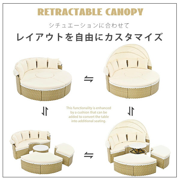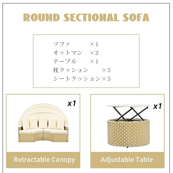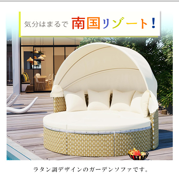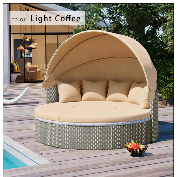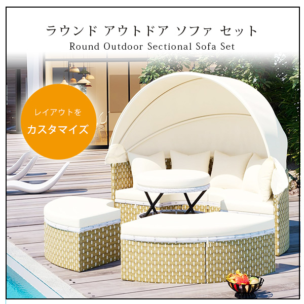 ラウンド アウトドア ソファ セット ガーデンソファ オットマン ソファ ベッド デイベッド テーブル クッション キャノピー 日よけ テラス バルコニー ガーデンファニチャー ソファー 屋外 Round Outdoor Sectional Sofa Set