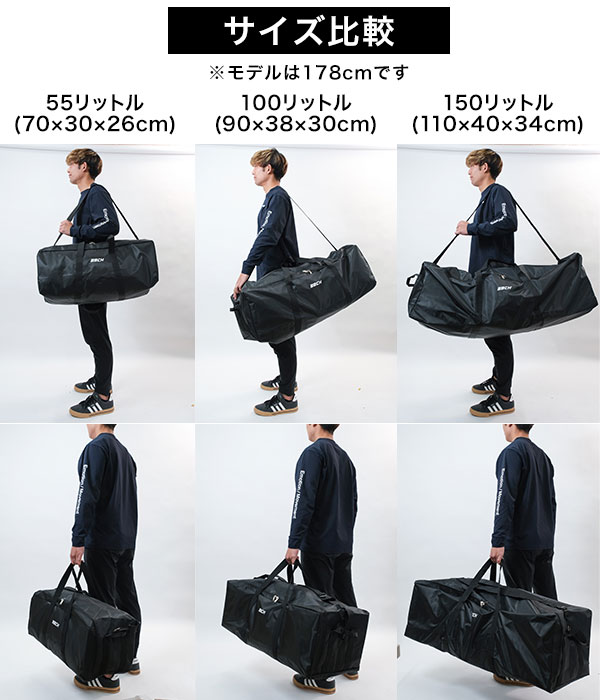 ■55L/100L/150Lの3サイズ展開で、個人からチームまで幅広く対応。