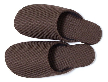シンプルなデザインでお部屋に合わせやすいソフトタイプのスリッパ。一見 鹿の子のような細かな凹凸のある素材感。