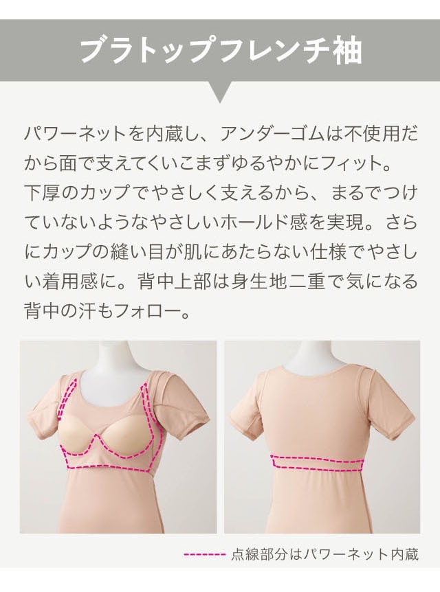 汗取りインナー レディース ブラトップ インナー 肌着 レディースインナー レディースブラトップ サラリスト 大汗さん 綿混素材 フレンチ袖 ベルメゾン