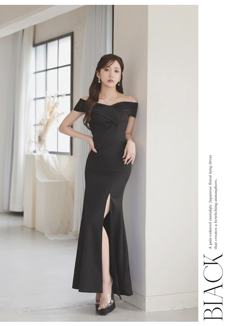 一部予約販売 キャバ ドレス キャバドレス ロングドレス キャバクラ パーティー セクシー Ryuyu オフショル 美デコルテ 小顔 大胆スリット