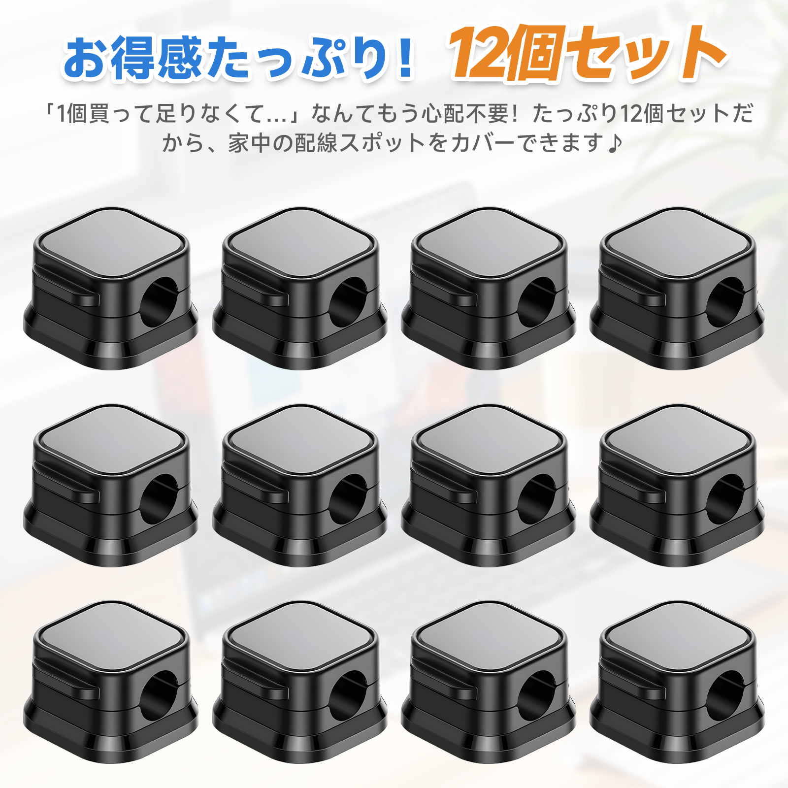 12個セットでコスパ抜群!「1個買って足りなくて…」なんてもう心配不要!たっぷり12個セットだから、家中の配線スポットをカバーできます♪