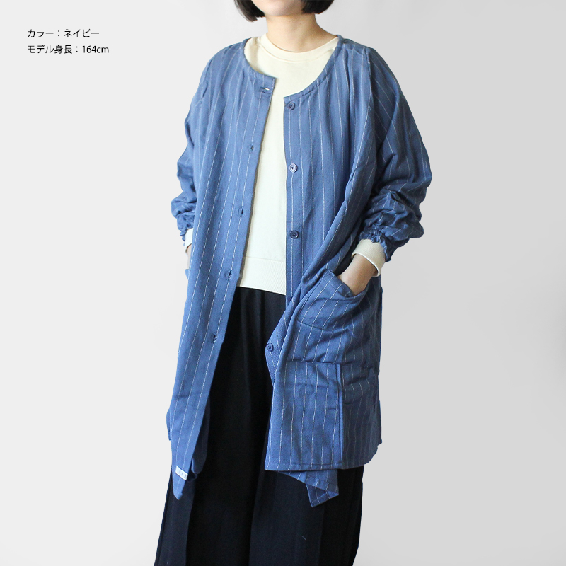 シンプルで上品なペンシルストライプのふっくらとした綾織りの生地は大人カジュアルな雰囲気を演出してくれます。