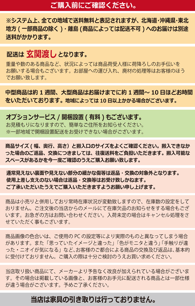 ◎※大型商品ですので、商品サイズ(幅、奥行、高さ)と搬入口のサイズをよくご確認ください。
