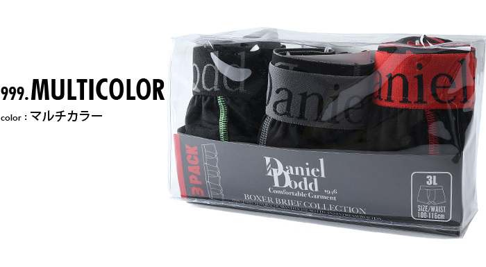 ■大きいサイズ メンズ DANIEL DODD 吸汗速乾 前開き ボクサーパンツ カラーステッチ ボクサーブリーフ 3枚セット インナー 肌着 下着 azup-2101