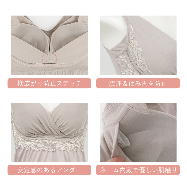 キャミソール スリップ ワンピース インナー 下着 補整ブラキャミ 補正ブラキャミ スリップ ブラトップ レディース 脇肉 細見え カップ付 ノンワイヤー 上向きバスト ボディシェイプ 寄せる 集める サイドスッキリ レース バストアップ 大きいサイズ 小さいサイズ BRNY 美胸 ハミ肉 セール SALE 値下げ bradelis peace 通販 QVC 口コミ キレイ 美ボディ ラク 40代 30代 50代 60代 人気 おすすめ おしゃれ かわいい レース 綿混 吸汗 消臭