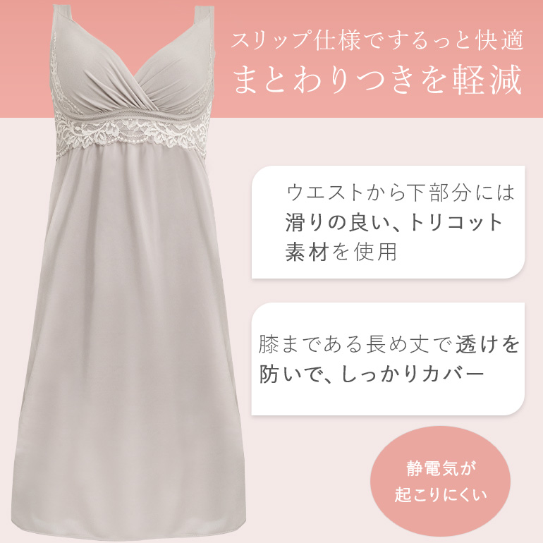 【楽に着れて、きちんとキレイ!レースが華やかなロング丈ブラスリップ】