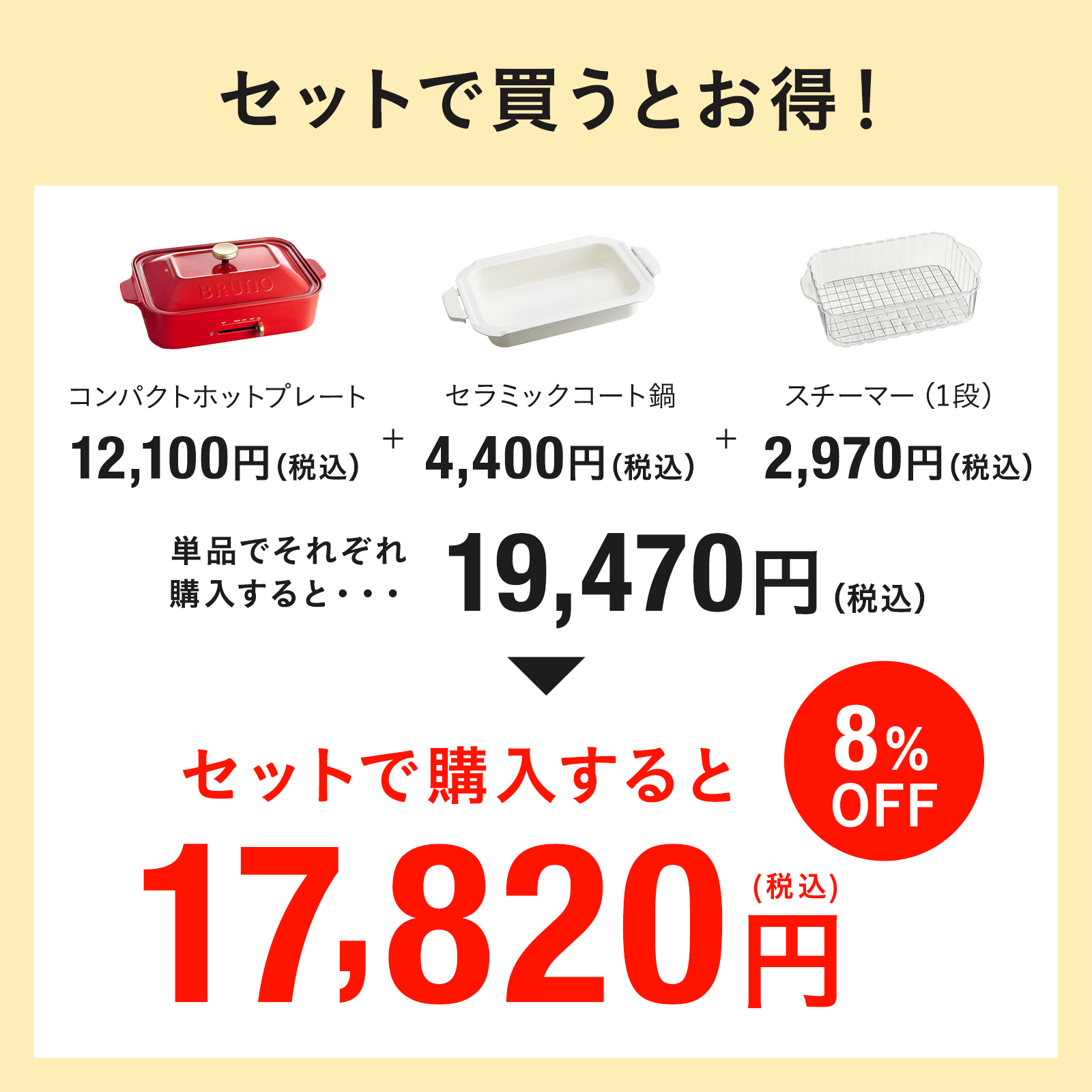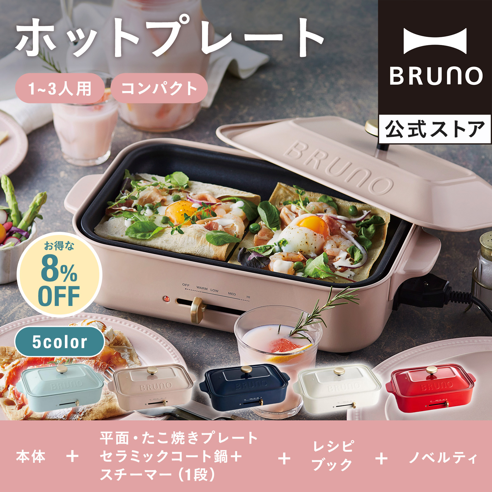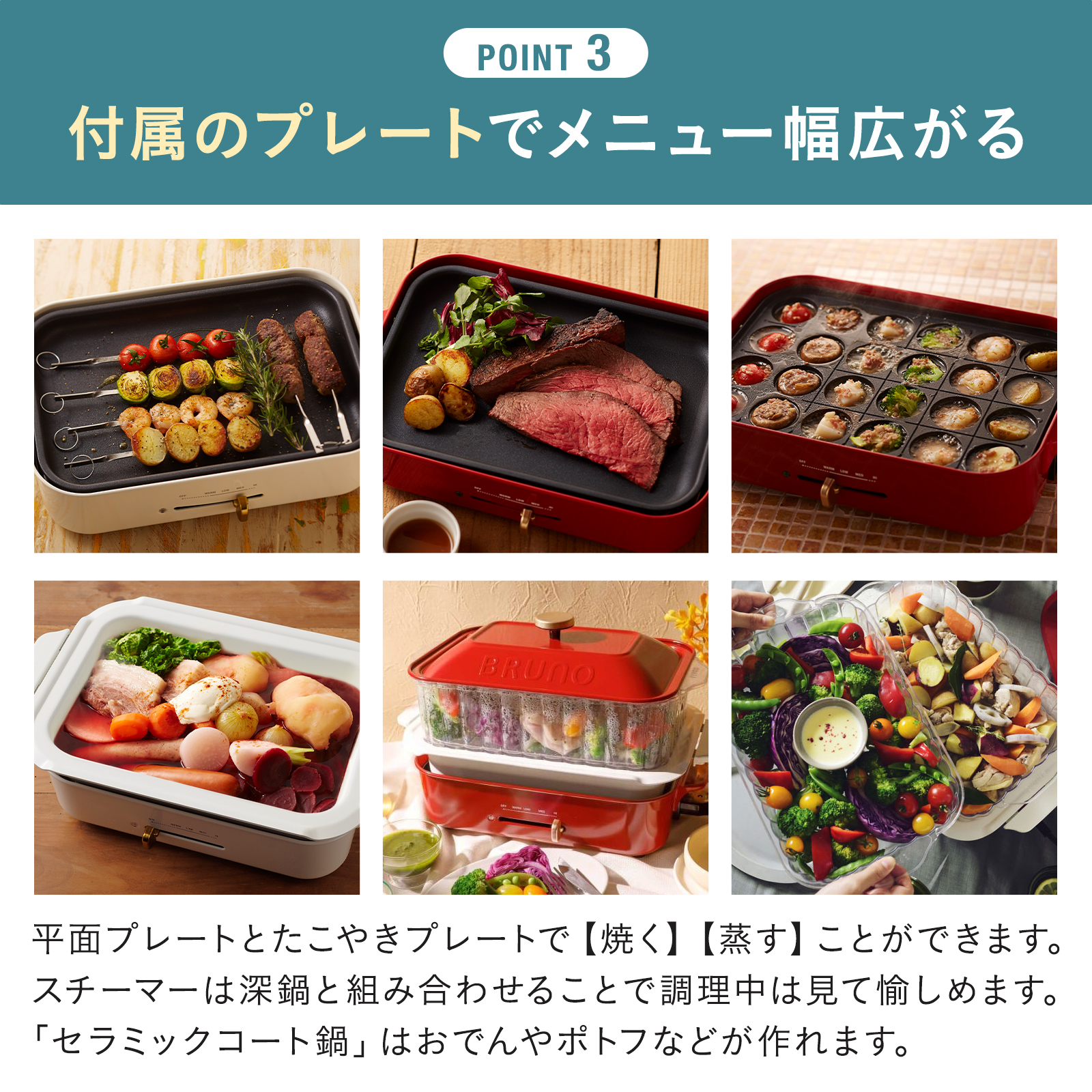 ※【コンパクトホットプレート】には平面プレート・たこ焼きプレートが付属しています。
