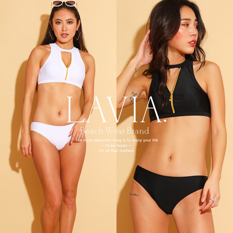 デザインビキニ 水着 レディース タンキニ ビキニ セット プチプラ 激安 スイムウェア 体型カバー セパレート LAVIA ラヴィア フロントジップデザインビキニ