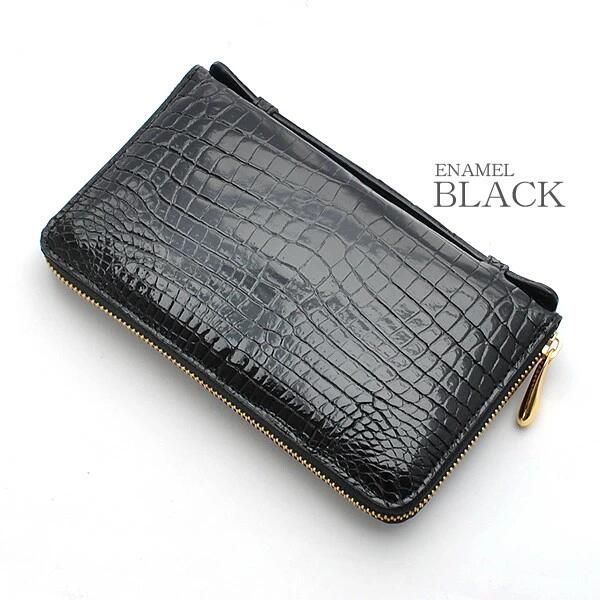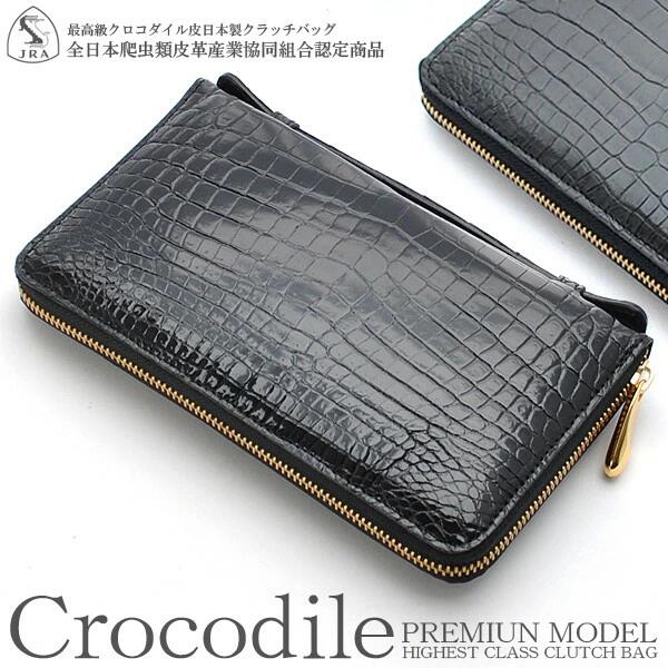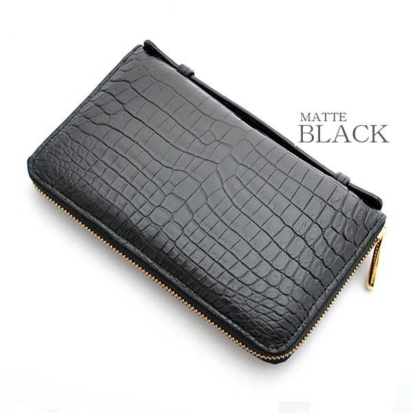 クロコダイル 長財布 メンズ 日本製 ラウンドファスナー ロングウォレット クラッチバッグ 人気 ワニ革 最高級国産レザー 艶あり マット 加工 JRA 本革 ブラック 鰐革 男性用 鞄 国産 ミニセカンド ギフト プレゼント 父の日