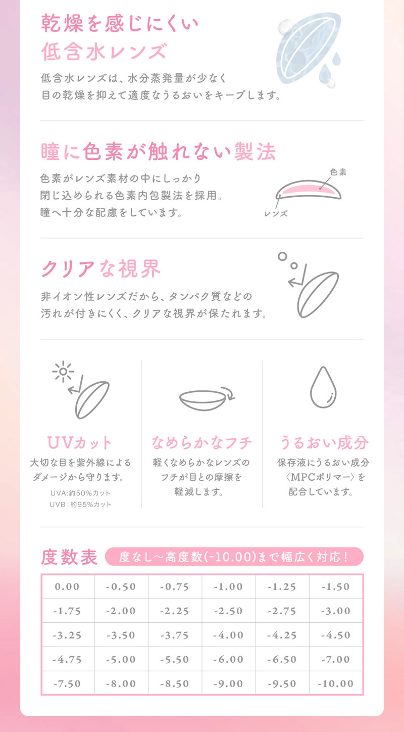 ●コンタクトレンズ使用に伴う医学的な眼のトラブルに関しては、当社では医療上の責任を一切負いません。