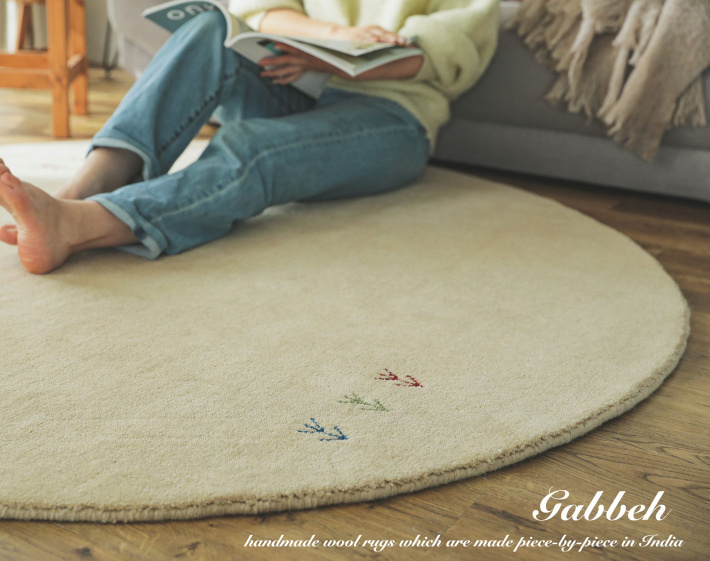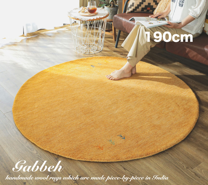 ラグ 円形 丸 厚手 ラグマット ウール100% ギャッベ ギャべ おしゃれ ふかふか 190cm カーペット 北欧 オールシーズン マット 冬 ホットカーペット 床暖房対応