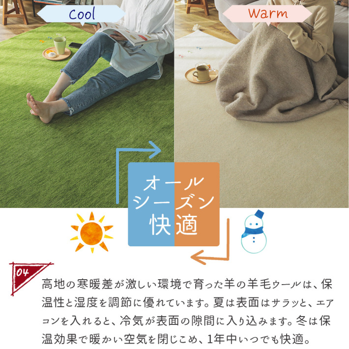 夏はサラッと。冬はヌクヌクな快適ウール100%。