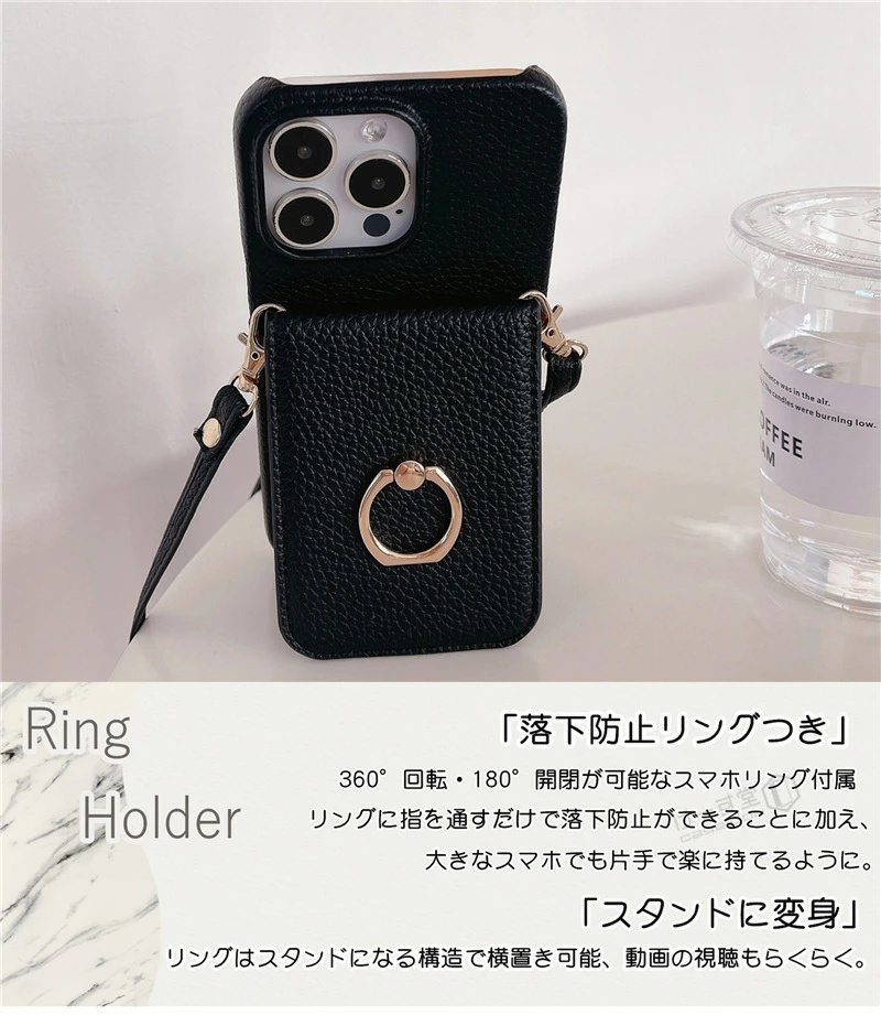 ? 360°回転が可能なスマホリング付属、ショルダータイプのスマホケースです。