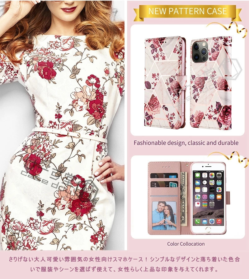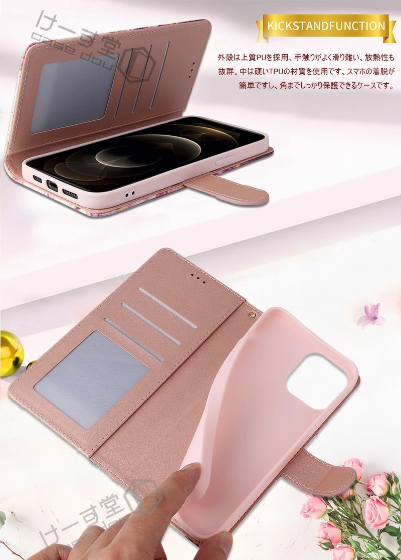 - >iPhone17 iPhone Air Phone16 iPhone12 mini iPhone15 Pro Max カード収納 iPhone16e かわいい iPhone11 14 13 Pro Max XR X XS SE2 ケース 手帳 花柄