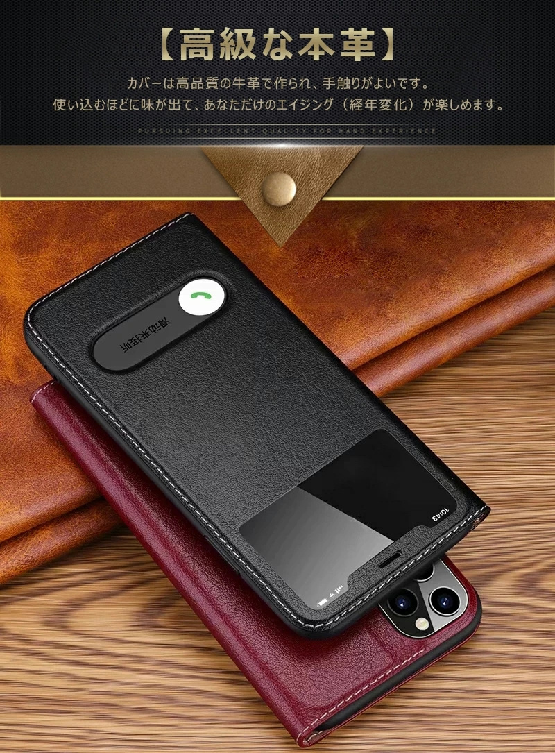 【高級な本革】カバーは高品質の牛革で作られ、手触りがよいです。使い込むほどに味が出て、あなただけのエイジング(経年変化)が楽しめます。インナーケースは衝撃吸収、柔軟性が高いTPU素材で作られ、装着簡単、落下・傷・衝撃からスマホを全面保護できます。