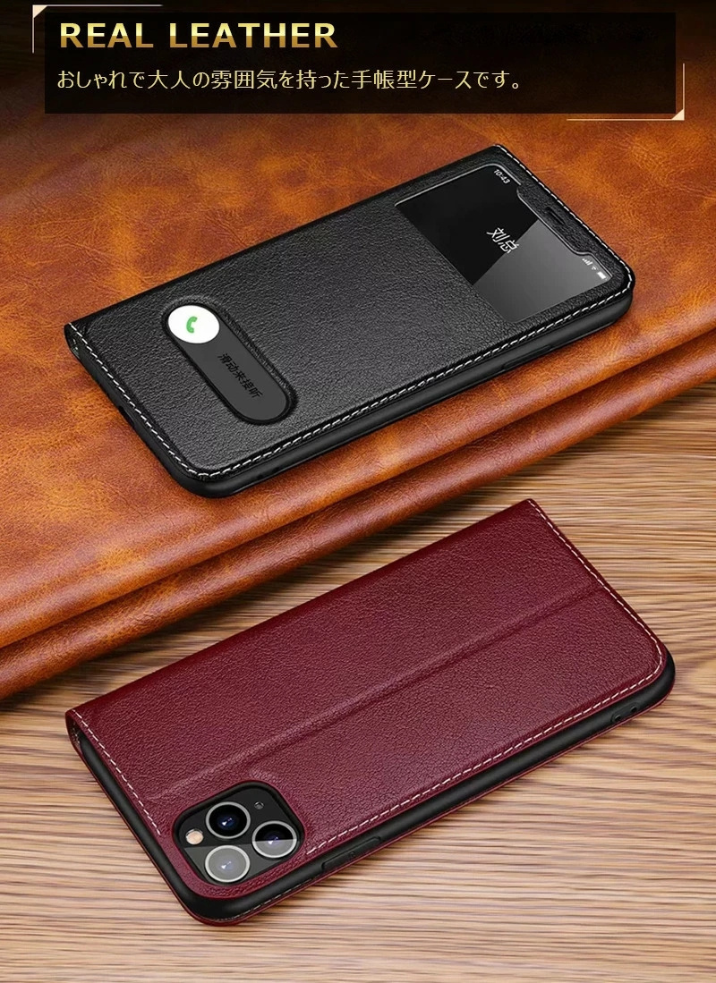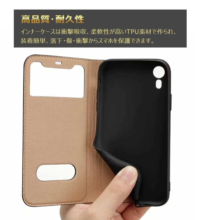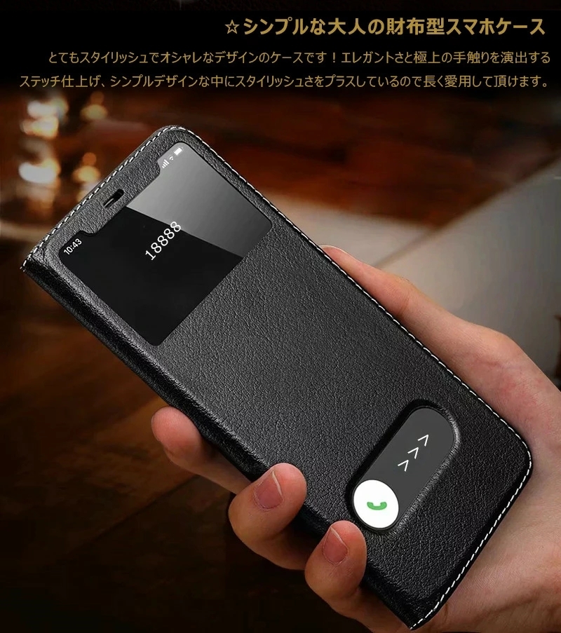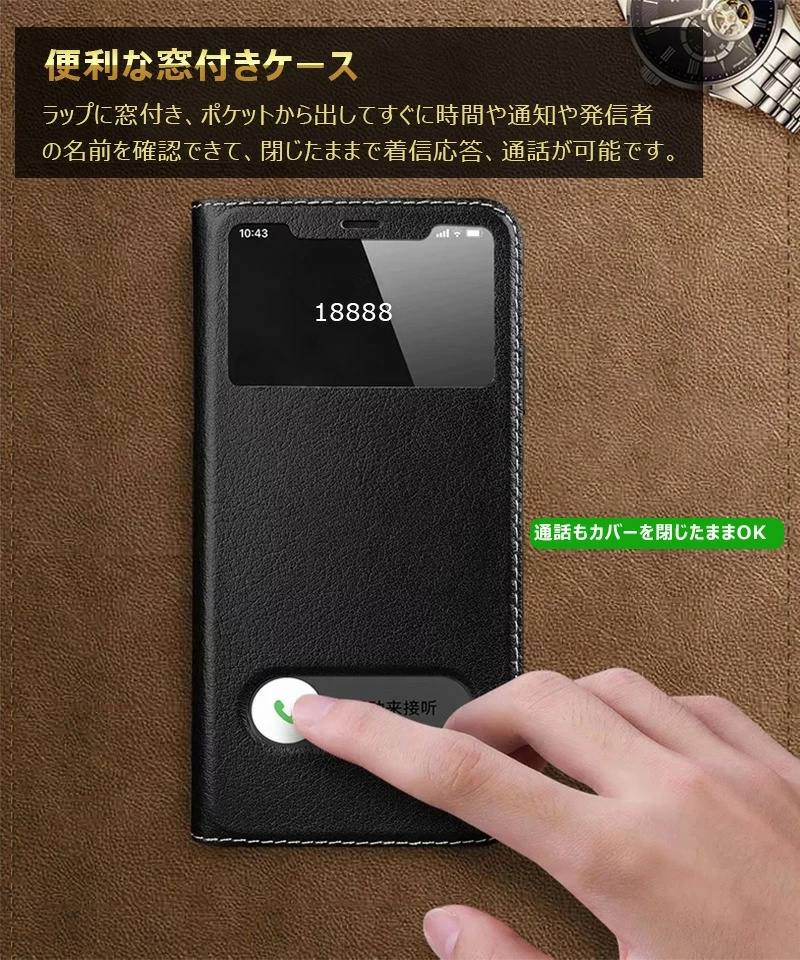 【2つ窓付き】フラップに窓付き、ポケットから出してすぐに時間や通知や発信者の名前を確認できます。更に、閉じたままで着信応答、通話が可能です。