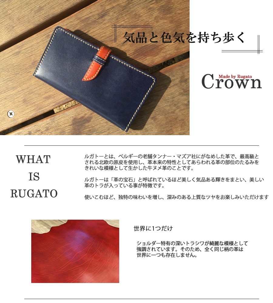 ※天然素材の質感、風合いを活かす加工法のため、元々の牛皮の状態を反映して斑(まだら)・キズ・皺・折れ目の痕跡が残る場合がありますが不良品ではございません。また、上から顔料を塗って色を付ける方法ではなく、天然の革を活かした染料染めによる色付けのため、お色味は個体差があり写真と異なる場合がございます。 ※本革製品は「水」に非常に弱い製品です。水気のある所や雨の日は十分にご注意ください。