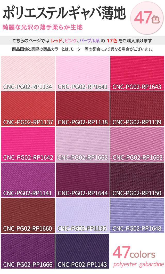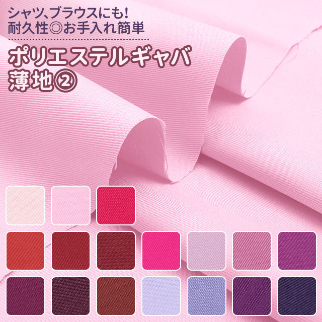 コスプレシャツ ブラウスに ポリエステルギャバ薄地 生地 無地 全47色 赤 ピンク 紫系 17色 布幅150cm 50cm以上10cm単位販売