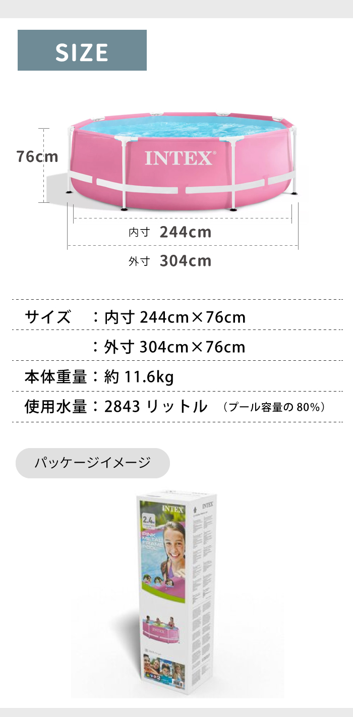 インテックス プール 公式 メタルフレームプール ビニールプール ピンク INTEX 円形 水あそび レジャープール 家庭用プール イベント キッズ 子供用プール 【2.44m×76cm 】 244×76cm