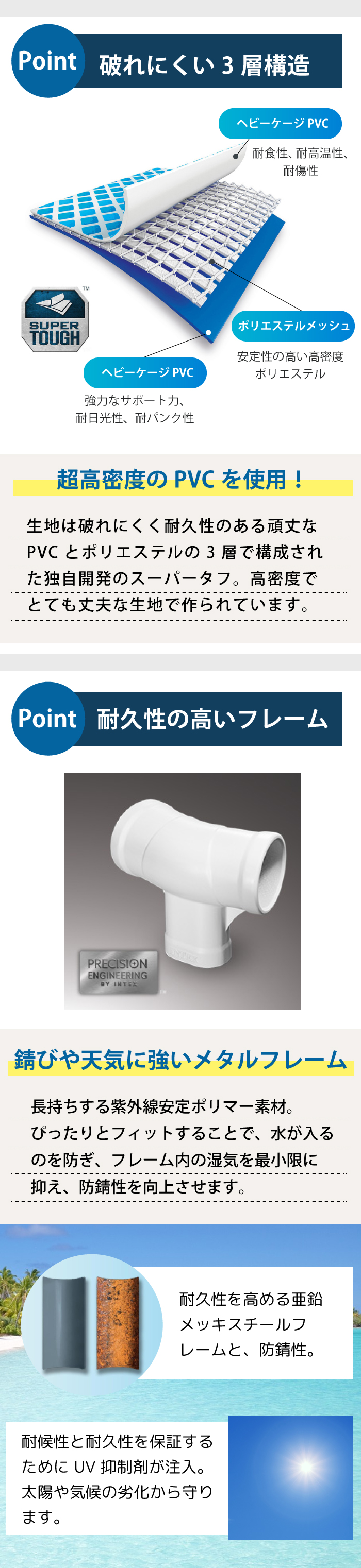 ●岩角やくい、砂利、貝殻、ガラス片、金属片、木片など、とがったものとの接触は破れる原因となりますのでご注意ください。