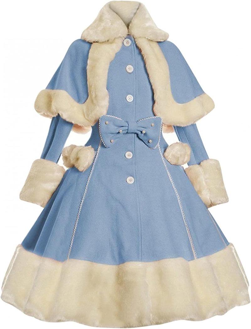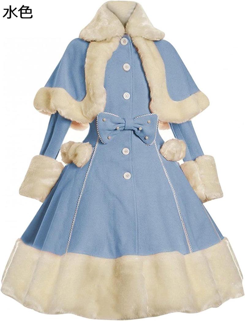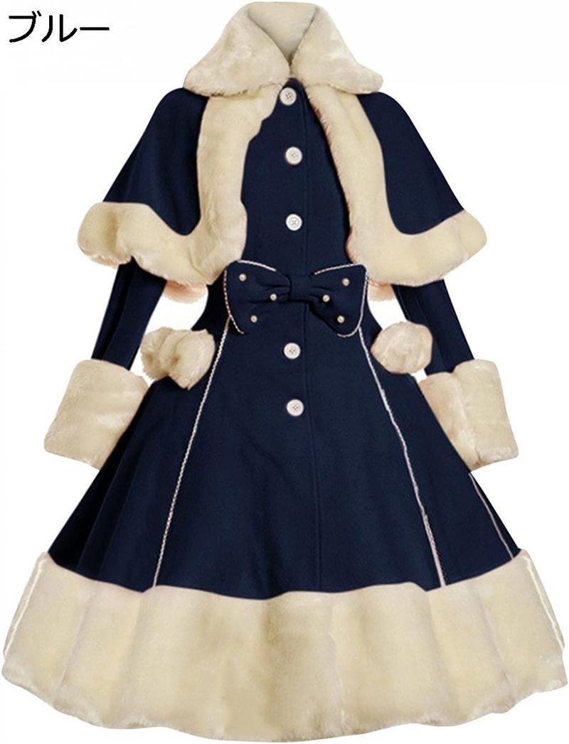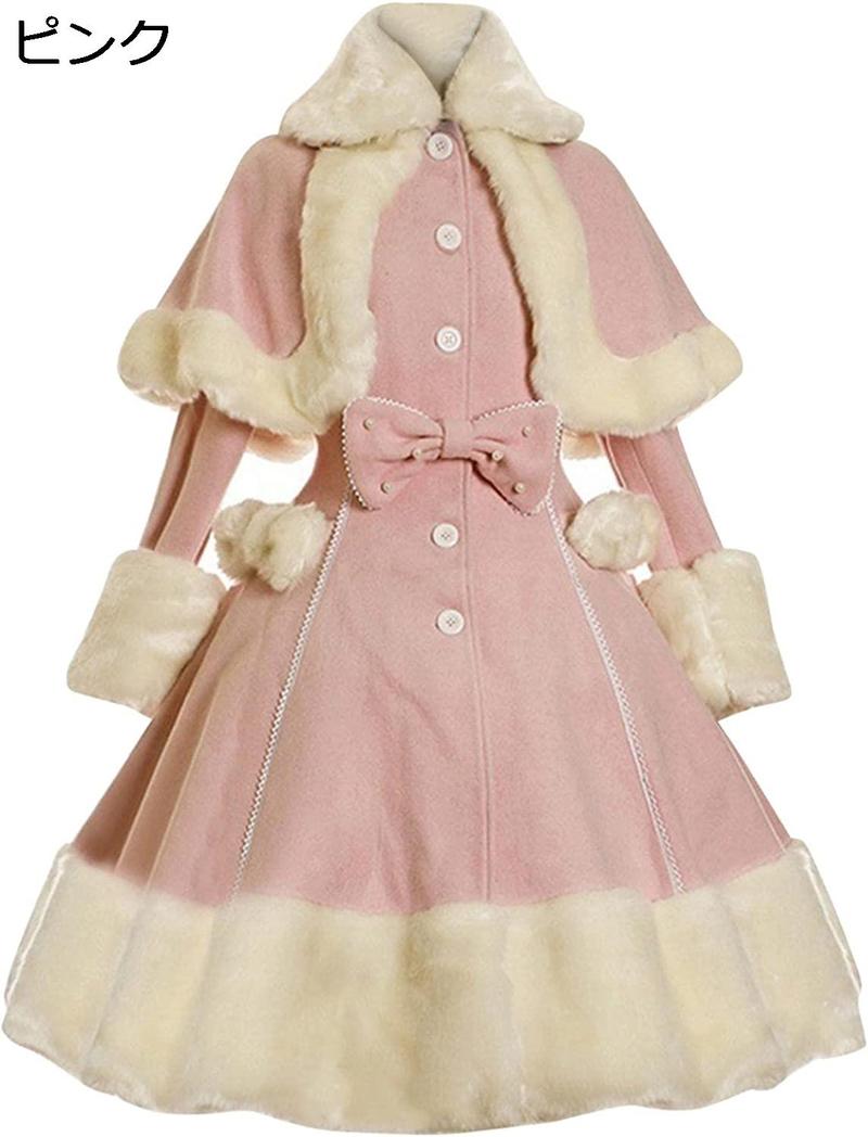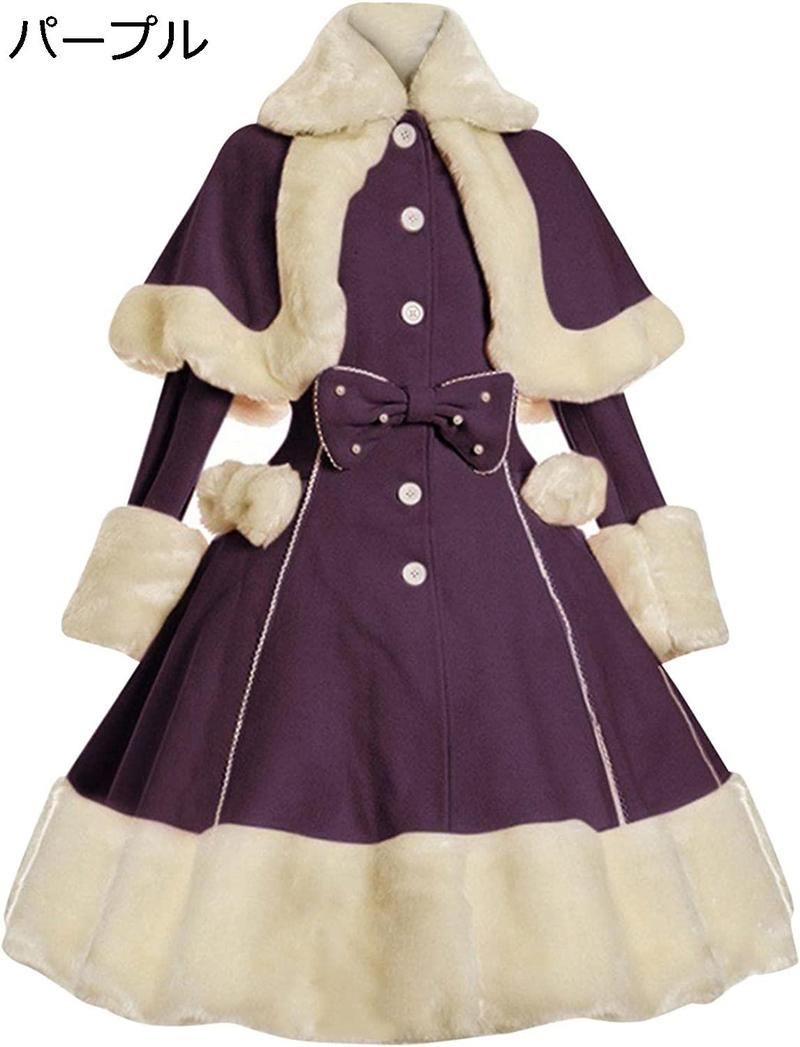 ワンピース ロリータ レディース ポンチョ付き ワンピース ファー 膝丈 秋冬 厚手 森ガール 可愛い ゴスロリ 衣装 ドレス 森ガール