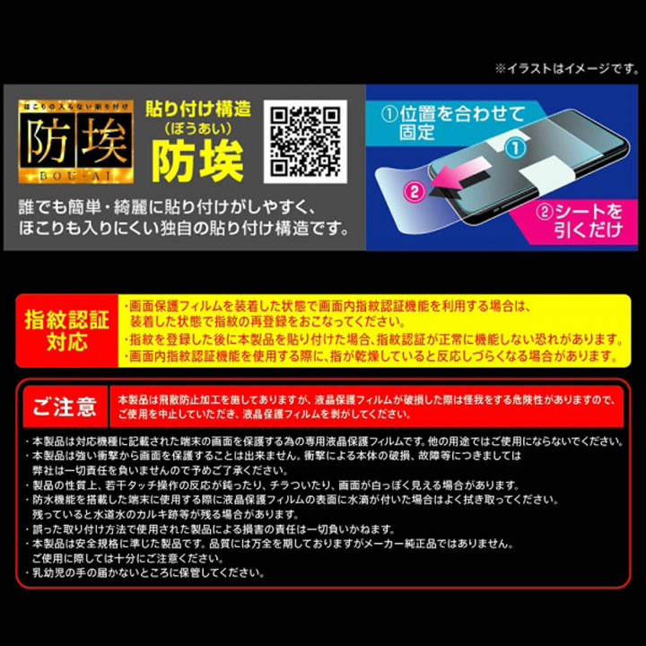 ・防水機能を搭載した端末に使用する際に液晶保護フィルムの表面に水滴が付いた場合はよく拭き取ってください。