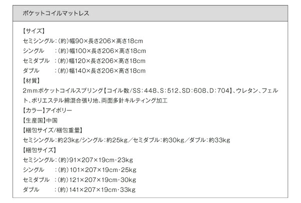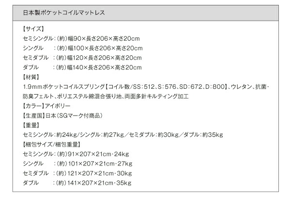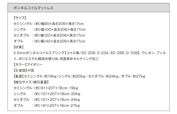 国産ボンネルコイルマットレスハード付き セミシングル ロング丈