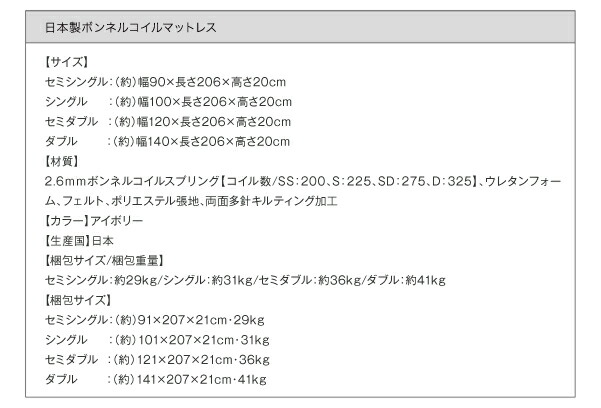 国産ボンネルコイルマットレスハード付き セミダブル ロング丈