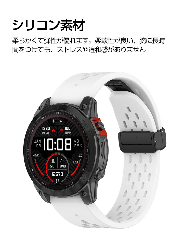 Garmin Approach S70 47mm/42mm 交換 バンド シリコン素材 おしゃれ 腕時計ベルト 替えベルト簡単装着 磁気吸着 調節可能 人気 腕時計バンド 交換ベルト