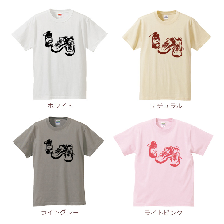親子リンクコーデが楽しめる!アウトドアにピッタリのトレッキングシューズとランタンデザインのペアTシャツ2枚セットです。