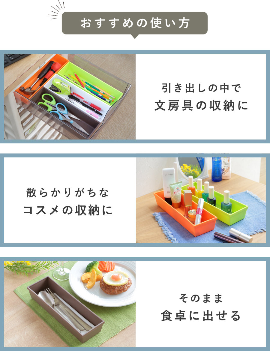 ●カトラリーだけでなく、小物や文房具などの収納にもおすすめです。