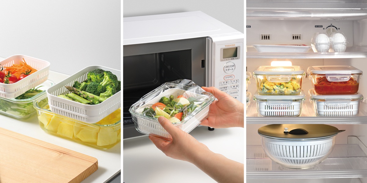下ごしらえからレンジ調理、冷蔵保存までを1つでできるマルチキットです。まとめ買いした野菜を簡単に下処理、作り置きができます。