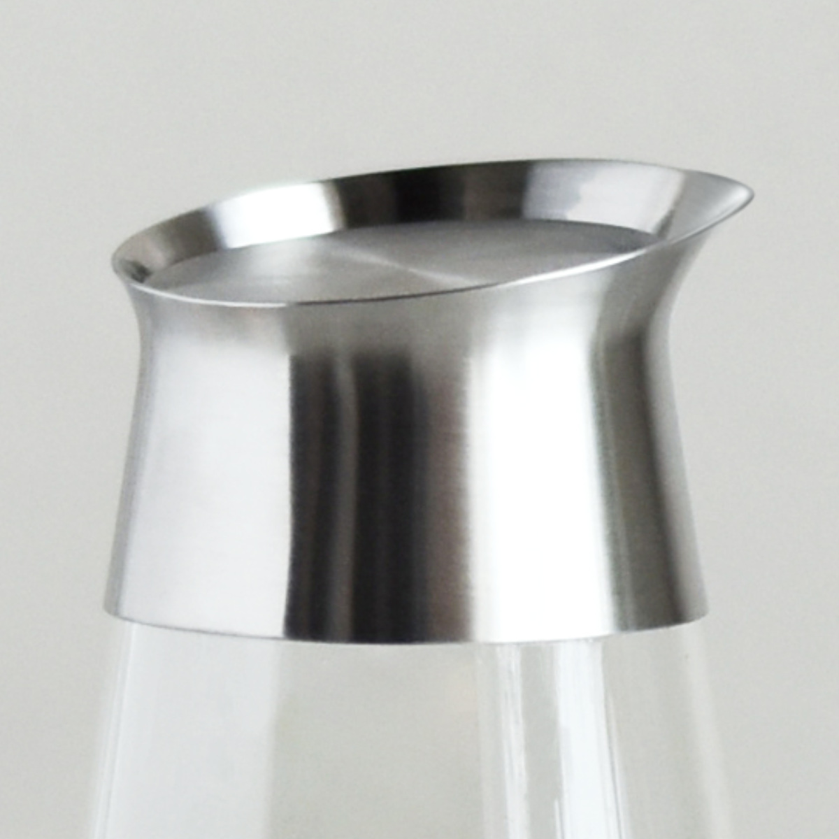 ステンレスとガラスを組み合わせ洗練されたデザインと個性的なフォルムが魅力的なカラフェです。お水はもちろん、麦茶やフレーバーウォーターなど、どんな飲み物を入れてもより美味しそうに演出してくれます。