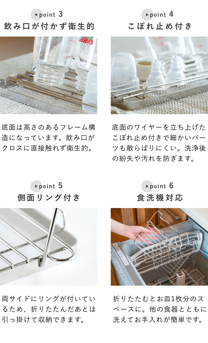 特典付き ビーワーススタイル すっきり暮らす ベビーボトルスタンド ( 水切りラック 日本製 ステンレス 水切りかご 水切り シンク上 折りたたみ )