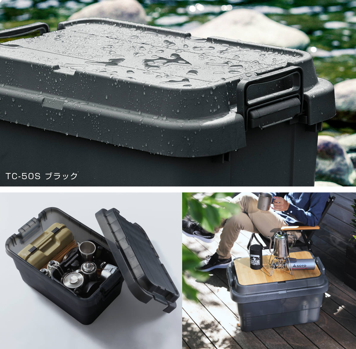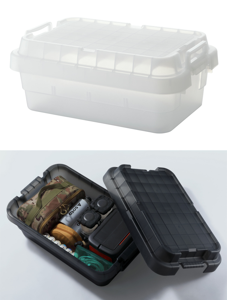 キャンプやアウトドア収納に最適な『トランクカーゴ』シリーズから、クリアカラーが登場。頑丈さと収納力はそのままに、「フタを開けなくても中身が見える」という便利さが加わりました。中身が一目で分かるので、収納効率がアップし、物の取り出しや管理もスムーズです。